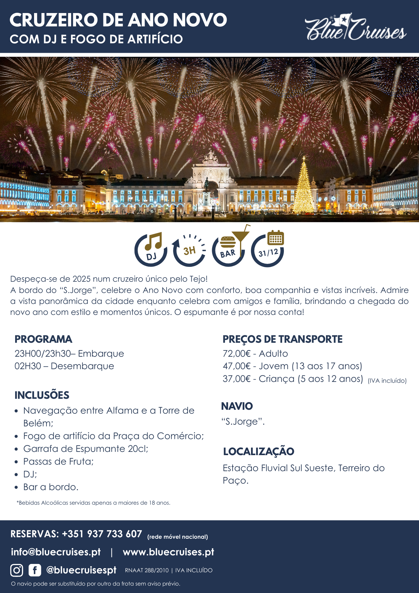 Tour / Cruzeiro de Ano Novo com DJ e Fogo de Artifício