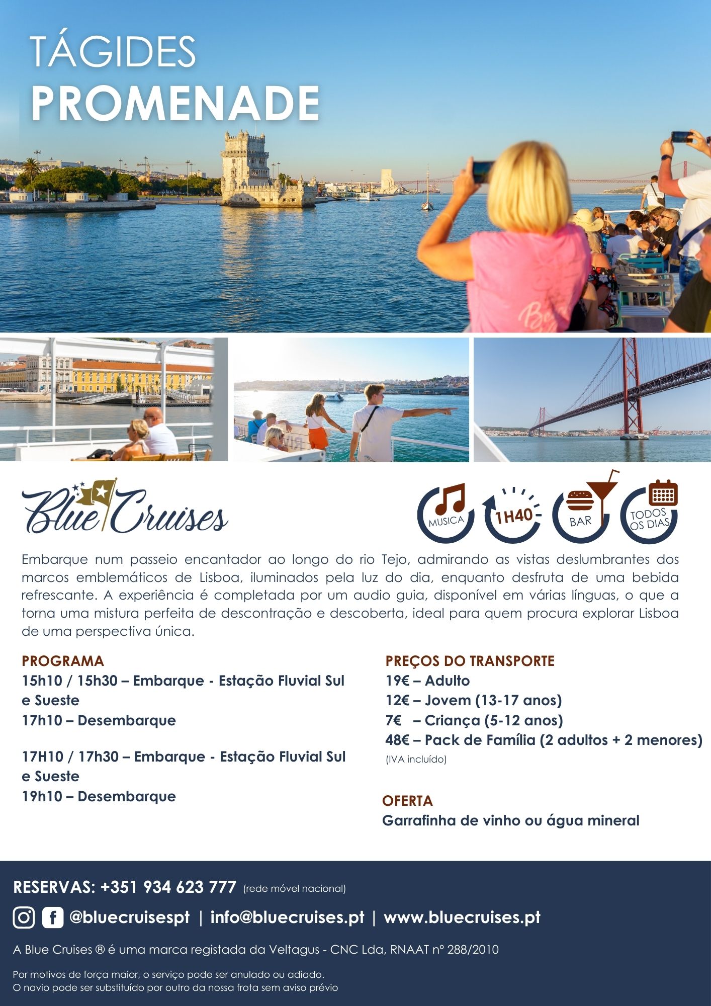 Embarque num passeio encantador ao longo do rio Tejo, admirando as vistas deslumbrantes dos marcos emblemáticos de Lisboa, iluminados pela luz do dia, enquanto desfruta de uma bebida refrescante. A experiência é completada por um audio guia, disponível em várias línguas, o que a torna uma mistura perfeita de descontração e descoberta, ideal para quem procura explorar Lisboa de uma perspectiva única.
